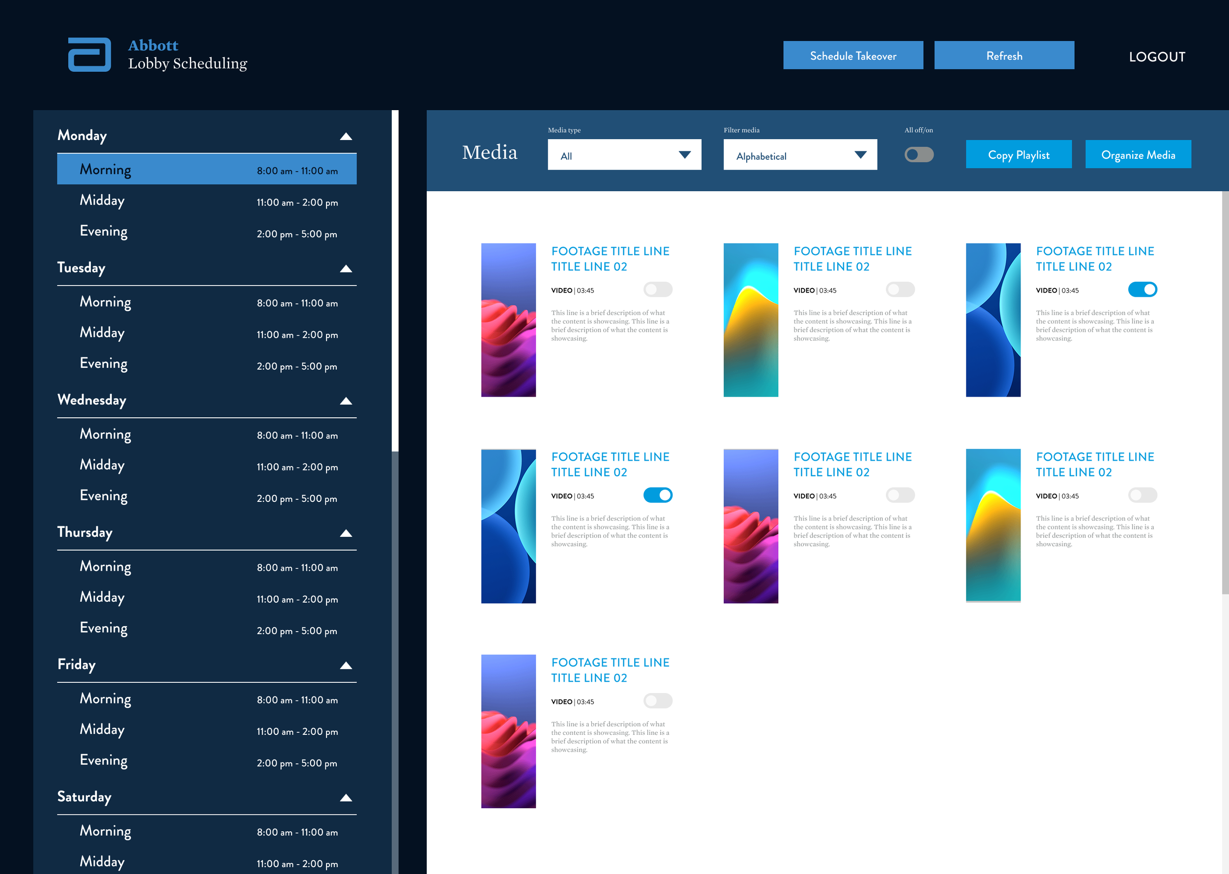 Contracted to build out the internal UX/UI wireframes and the dev/refinement of other materials for Abbott's interactive touchscreen lobby check-in experience using Figma as the primary platform for wireframes, prototyping, and development.